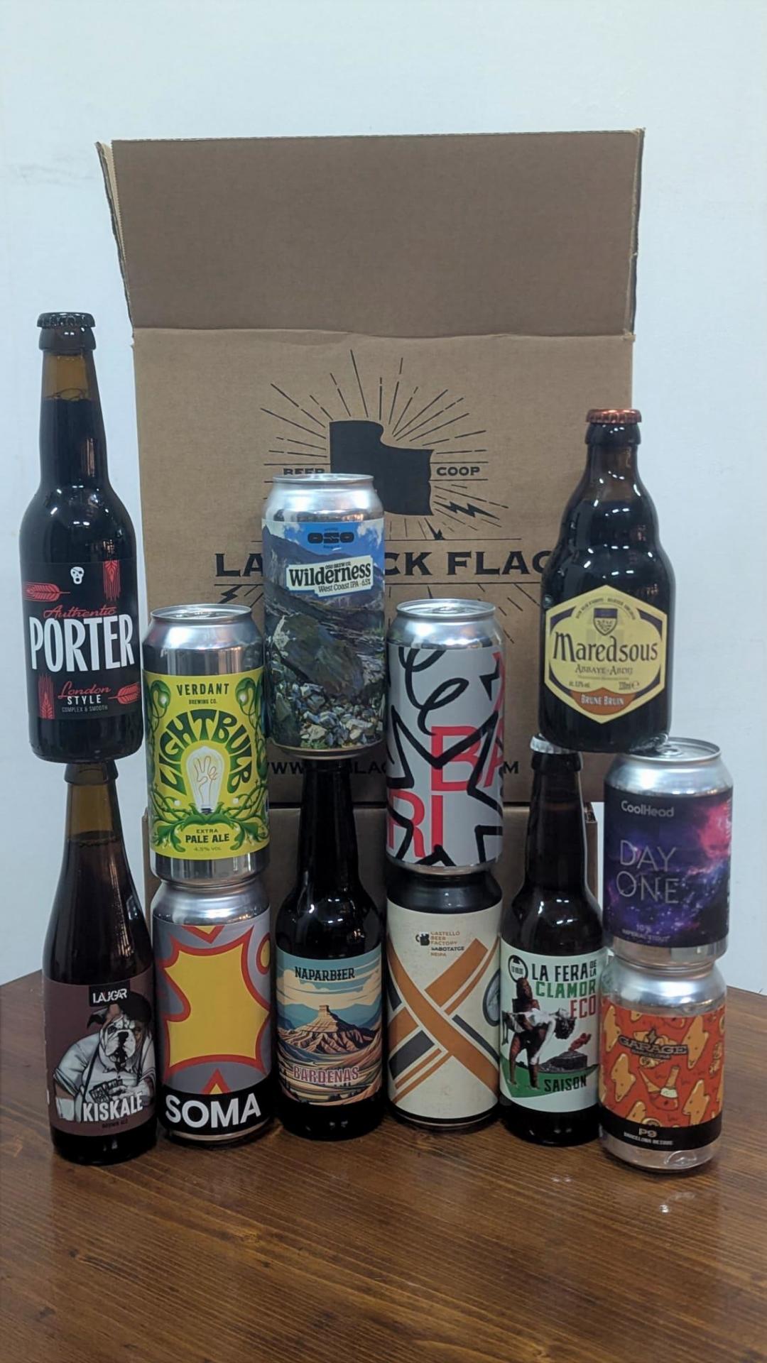 CAT - Aquest pack conté 12 cerveses artesanes variades en llauna i ampolla, dels estils: SAISON, HEFEWEIZEN, EXTRA PALE ALE, WEST COAST IPA, BRIGHT IPA, DIPA, TIPA, BERLINER WEISSE, ENGLISH PORTER, BROWN ALE, BELGIAN ABBEY TRIPLE i IMPERIAL STOUT.
