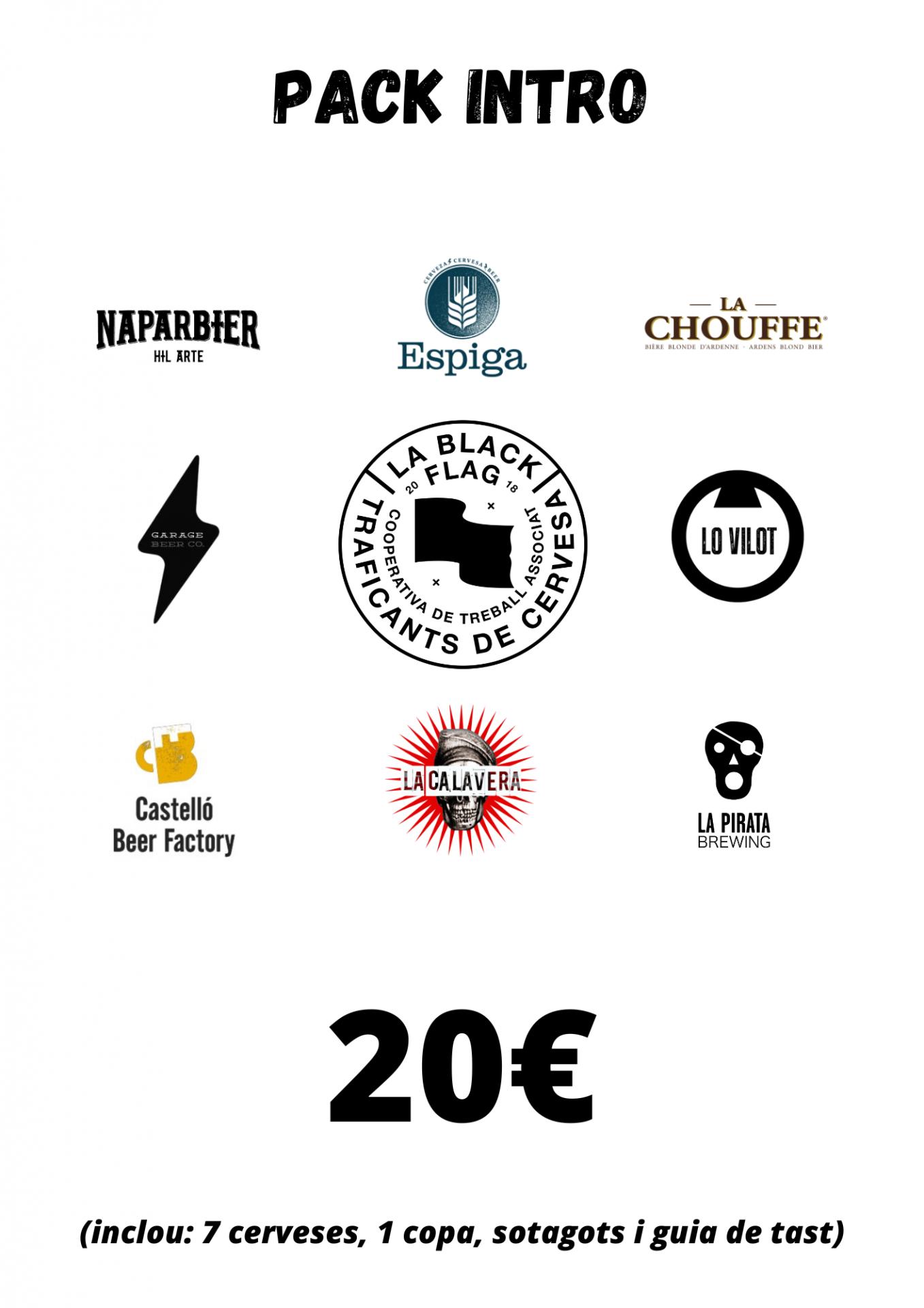 CAT - Aquest pack està pensat per a introduir-te en el món de la cervesa artesana. En ell hi trobaràs 7 cerveses artesanes de 7 estils diferents. També hi trobaràs una copa serigrafiada, uns sotagots i una petita guia amb les nocions bàsiques del tast i una nota de tast de cada una de les cerveses.